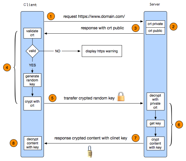 采用HTTPS协议的服务器必须要有一套数字证书,可以自己制作,也可以向组织申请。区别就是自己颁发的证书需要客户端验证通过,才可以继续访问,而使用受信任的公司申请的证书则不会弹出提示页面(startssl就是个不错的选择,有1年的免费服务)。这套证书其实就是一对公钥和私钥。如果对公钥和私钥不太理解,可以想象成一把钥匙和一个锁头,只是全世界只有你一个人有这把钥匙,你可以把锁头给别人,别人可以用这个锁把重要的东西锁起来,然后发给你,因为只有你一个人有这把钥匙,所以只有你才能看到被这把锁锁起来的东西。